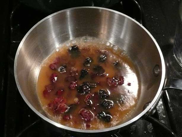 Results: This was very good. The problems I had with the dish were of my own making: Instead of using the slicing disk of the food processor, I used the shredding disk, resulting in a not-too-pleasant flakey texture to about half of my sprouts (before I realized my mistake and swapped the disk out). Second, I used dried cranberries and cherries rather than dried currants (which I couldn’t find in any of my three grocery stores), making the dish a bit too sweet for my taste. All in all, however, the flavor was very good – especially the chestnuts which had a very subtle and earthy savor to them. I reheated leftovers the second night, and while the color was nowhere near as vibrant, the taste was the same if not better. Prepared properly, this would be a great addition to the holiday table.