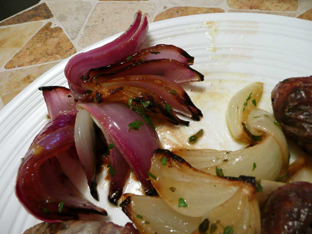 Since my last chicken post was kind of a bust (no offense, honey, it just wasn’t really a recipe. And besides no one can fry those Tyson tenders like you can – it can’t be taught!), I have a really really good one for you today. This recipe was given to me by a friend who is taking a Healthy Cooking class out in Brookline, MA. She shared with me some of the dishes she had already made, and I of course weeded through all the really healthy ones with such forbidden items as vegetables, tofu, and whole wheat flour, to find the only one my husband would eat. And, boy, did he ever! We are huge fans of this recipe, even more so when I have caramelized onions already on hand to make this even easier! In fact, may I recommend to all of you that you always have some caramelized onions on hand? They are great for stirring into risotto, topping on baked potatoes, adding to an omelette, layering into a vegetable gratin, incorporating into hors d’oeuvres or for any number of other possibilities. And they do keep, especially if you freeze them this way.